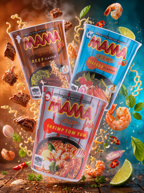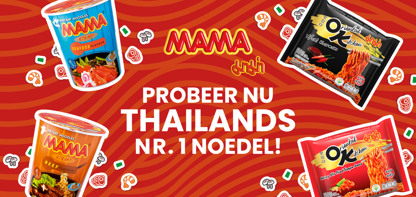 Zin in een snelle snack met veel smaak? Ga voor MAMA in Kip, Tom Yum, Groente of Rund – Thailand’s nummer 1 noedel met authentiek karakter. Heb je grotere trek of wil je uitpakken? Probeer dan de verrassende OK-lijn met romige Carbonara of smaakvolle Salted Egg. MAMA staat voor gemak, kwaliteit en karakter: jouw favoriete noedel, klaar in een paar minuten.