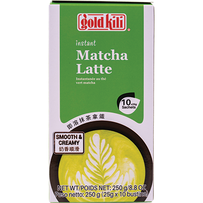 Matcha latte is een kant-en klare geportioneerde oplosbare korrels/ poeder op basis van onder andere groene theepoeder, creamer en melkpoeder. Japanse groene thee die vermalen wordt tot poeder heet”matcha”. Traditioneel worden de groene thee blaadjes op speciale wijze geoogst. Ze worden paar weken vóór de oogst met donkere doeken afgedekt. Hierdoor krijgen de theeplanten minder zonlicht, waardoor ze meer chlorofyl aanmaken. Chlorofyl verzorgt dat de blaadjes groener van kleur, gezonder en smaakvoller. Met toevoeging van latte (melk) heeft deze drank een gladde en romig textuur met de hooiig smaak van groene thee.