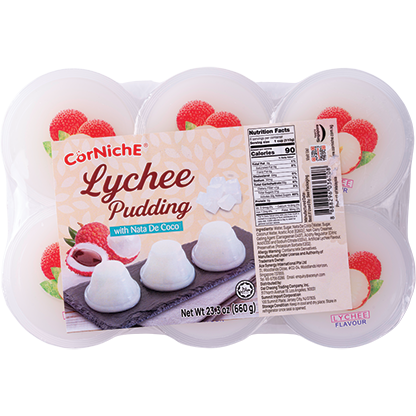 Heerlijke individueel verpakte zijdezachte lycheepudding met stukjes nata de coco welke een stevige een chewy bite geeft. Een perfect toetje of zoet tussendoortje!
