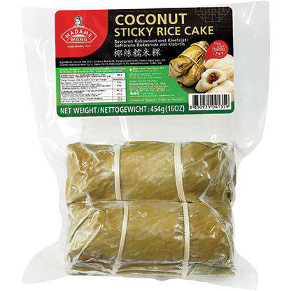 Frozen coconut cake is een zoete kleefrijst rol met onder andere kokosvlees, kokosmelk en palmsuiker vulling, omhuld met bananenblad. Frozen coconut cake is een populaire zoete snack in Thailand.